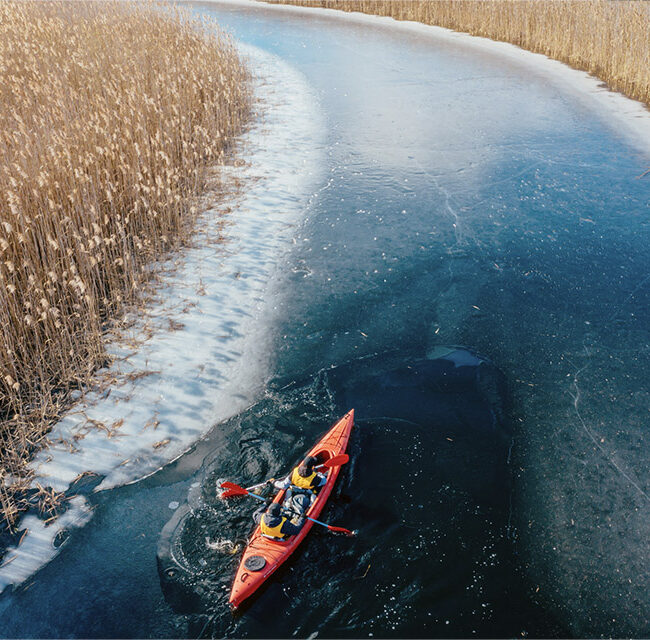 Žiema Lietuvoje atneša unikalių galimybių mėgautis gamta, o plaukimas baidarėmis Kražantės upe yra viena iš jų.